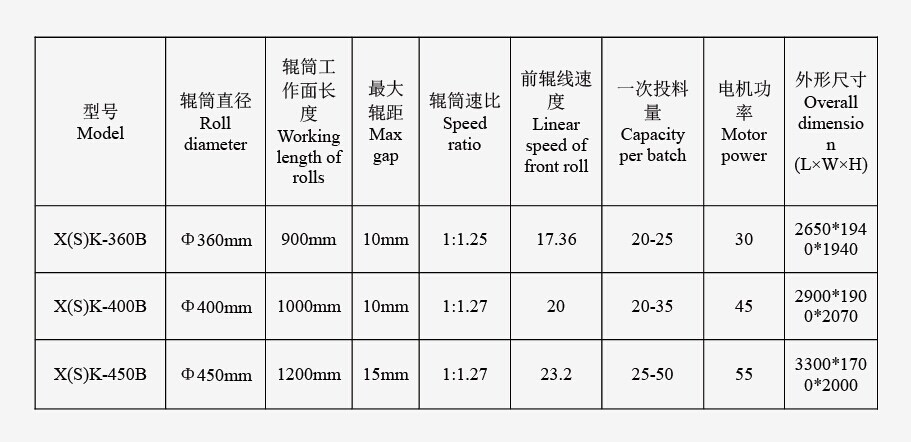 1.主要用于膠料的塑煉、混煉、熱煉及壓片