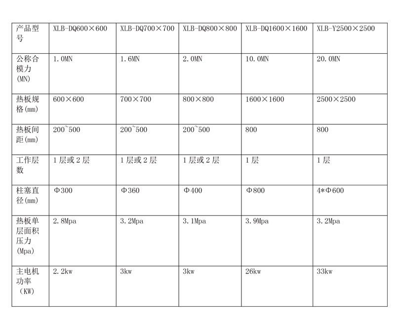 1.該機型可根據實際使用要求,將熱板間距和鎖模力、熱板面積隨意調整大小2.用戶可選擇電熱、汽熱、油熱等多種熱板加熱方式3.工作層數為1層或多層4.控制方式可為手動或自動控制5.可配增速缸,提高升降速度6.可配有手動推拉模和自動液壓推拉模